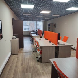 В офисном блоке сдается помещение (на поэтажном плане № 19, 20) со встроенным закрывающимся кабинетом для руководства (или переговорная) без окна (8 кв.м). Имеется система видеонаблюдения и СКУД. Можем предоставить офисную мебель бесплатно.