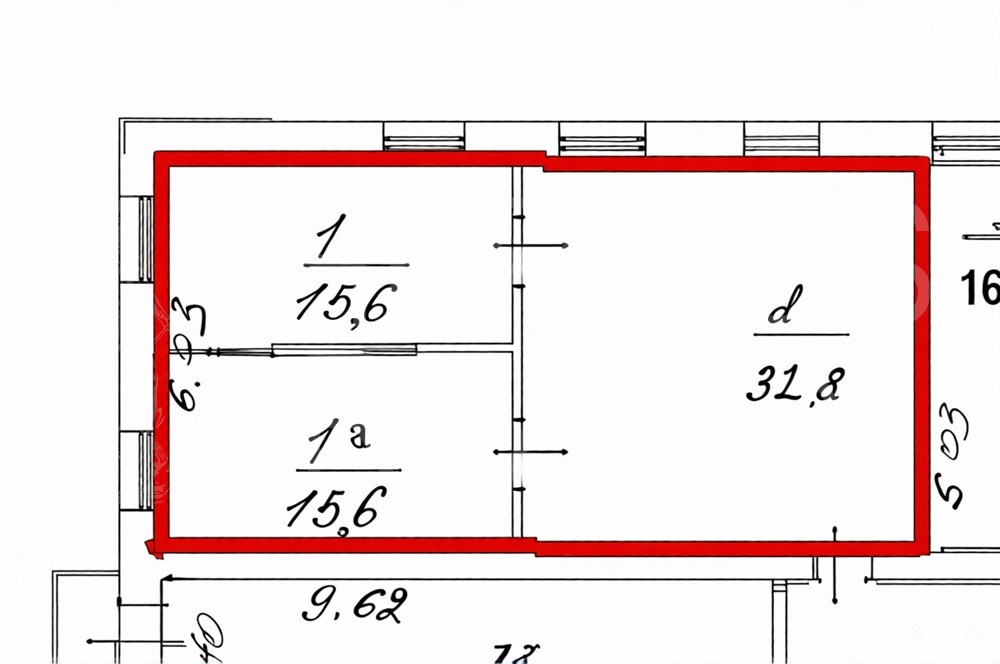 64 м² на 5-м этаже пятиэтажного административного здания сталинской постройки .
