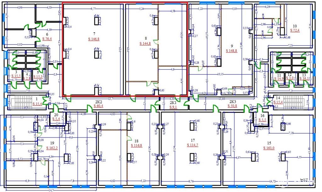 Высота потолков 3 м.
