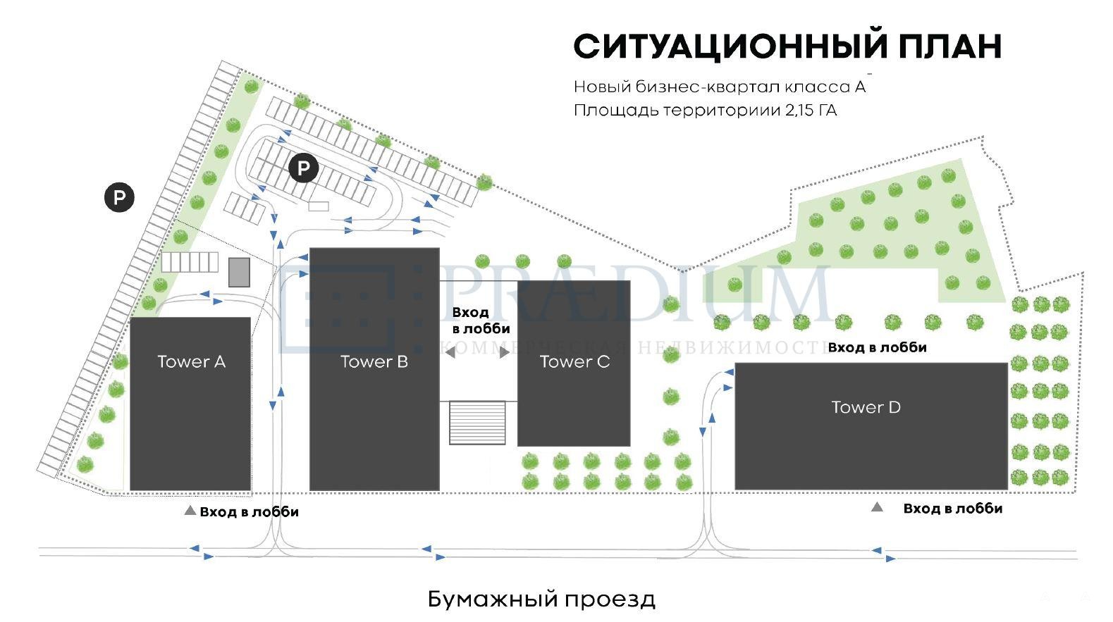 Планировка - open space. Приточно-вытяжная вентиляция. Центральное кондиционирование. Интернет, телефония. Охрана. Видеонаблюдение. Система контроля доступа. Подземная парковка. Наземная парковка.