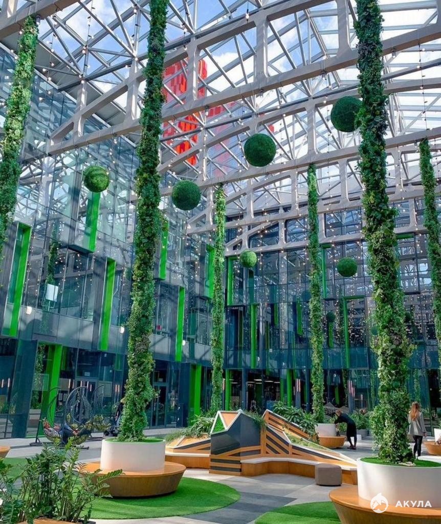 Уникальная фишка: 8 дизайнерских атриумов с 8-метровыми потолками, зонами для работы и общения. В одном из атриумов — профессиональный теннисный корт!