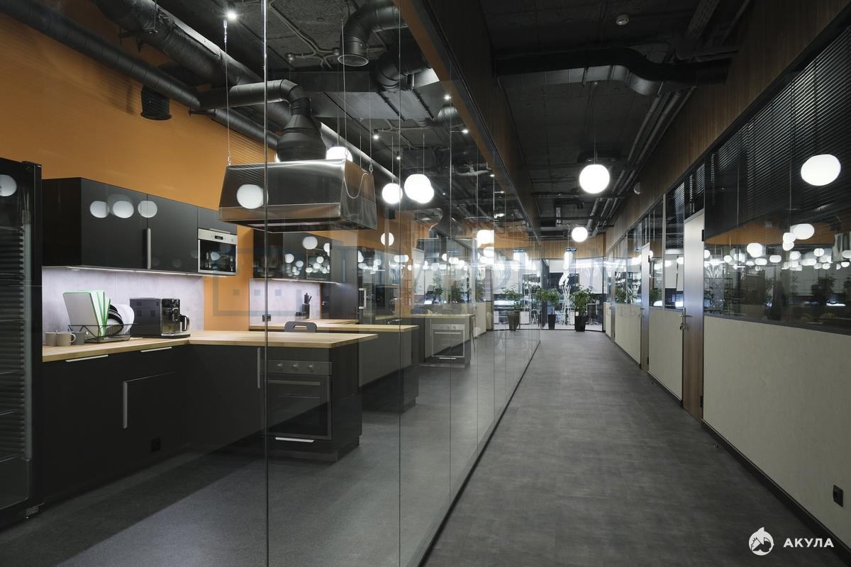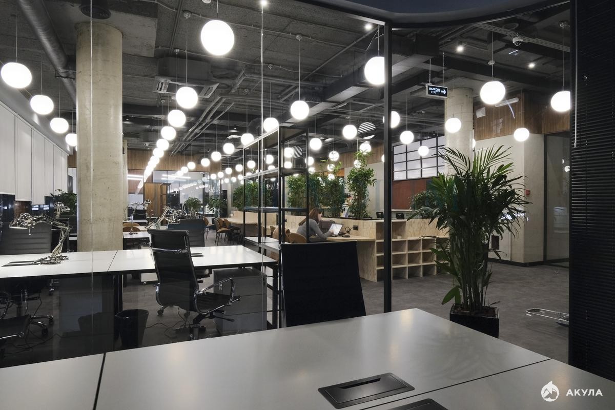 • Планировка смешанная: открытые залы сотрудников, кабинеты, переговорные комнаты, кухня, серверная, ресепшн, с/у, зона руководства.