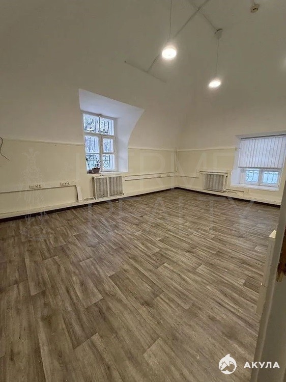Кабинетная планировка. Высокие потолки. Окна по периметру здания.