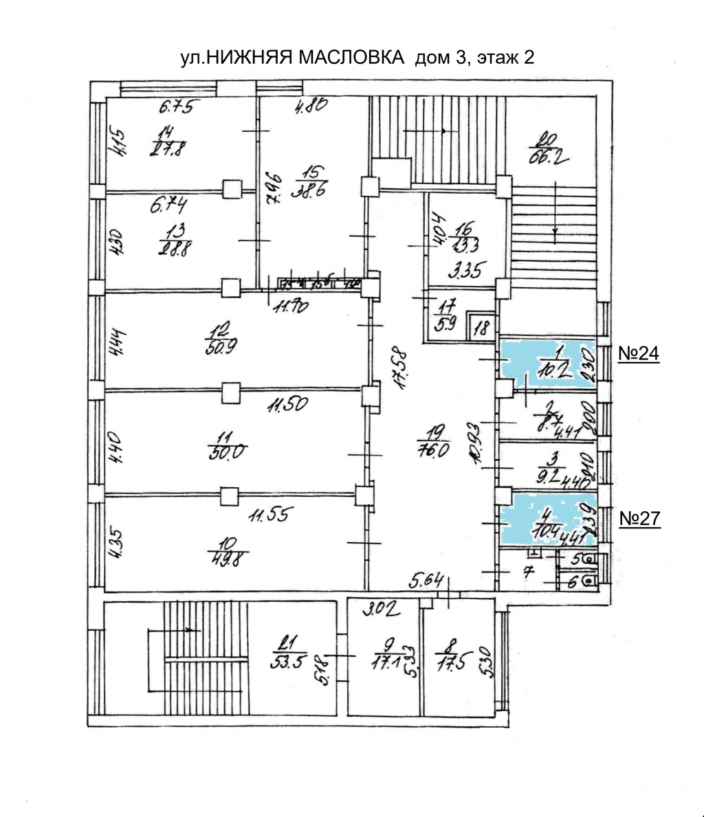 2 этаж - №24 - 10, 2 м2 и №27 - 10, 4 м2;