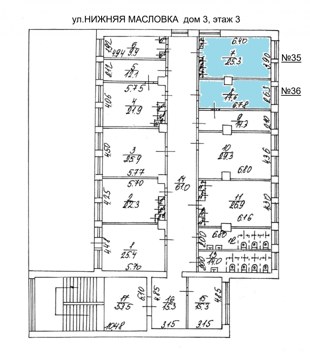 3 этаж - №35 - 25, 3 м2 и №36 - 17, 6 м2
