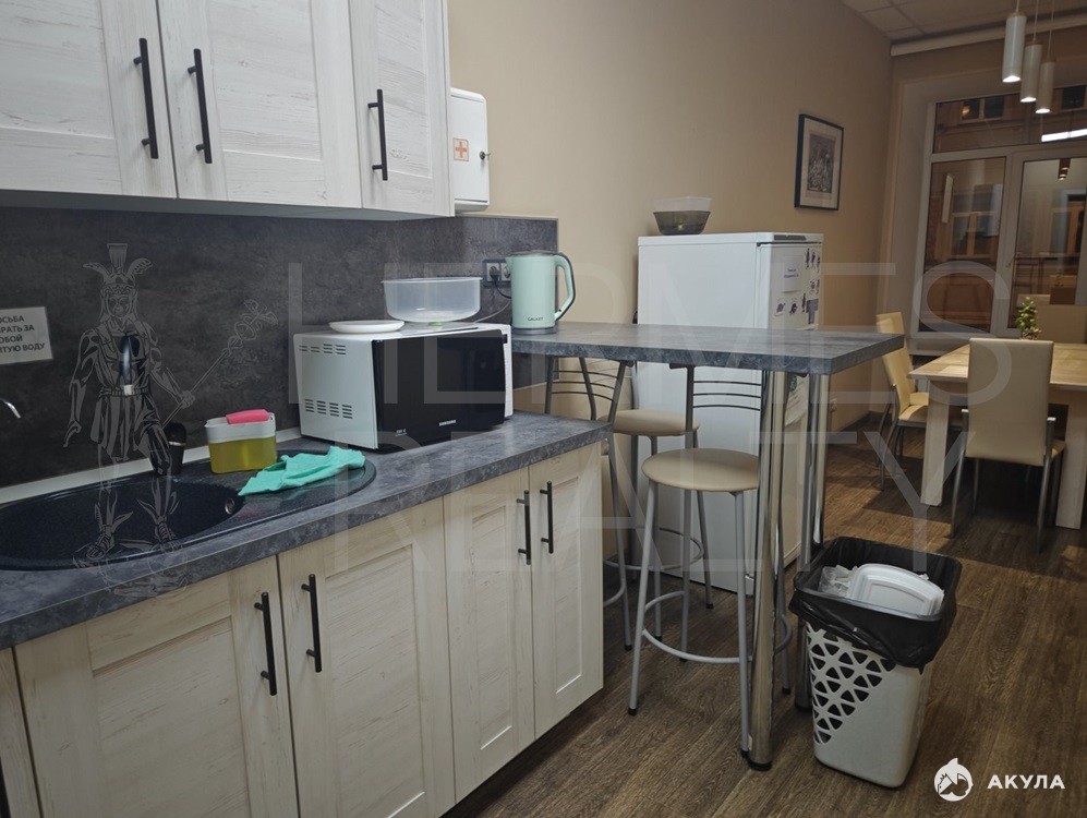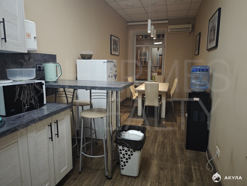 Офисная отделка. Высота потолков - 3, 2 метра. Полы - ламинат. Оборудованная кухня на этаже. Сан/узлы на этаже.
