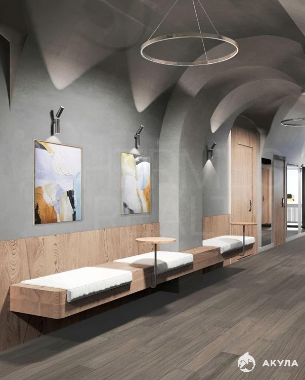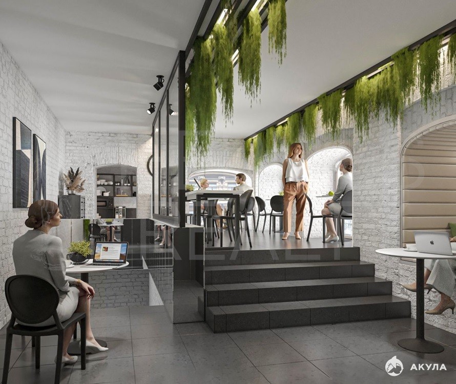 Общие зоны с кухней и переговорными комнатами.