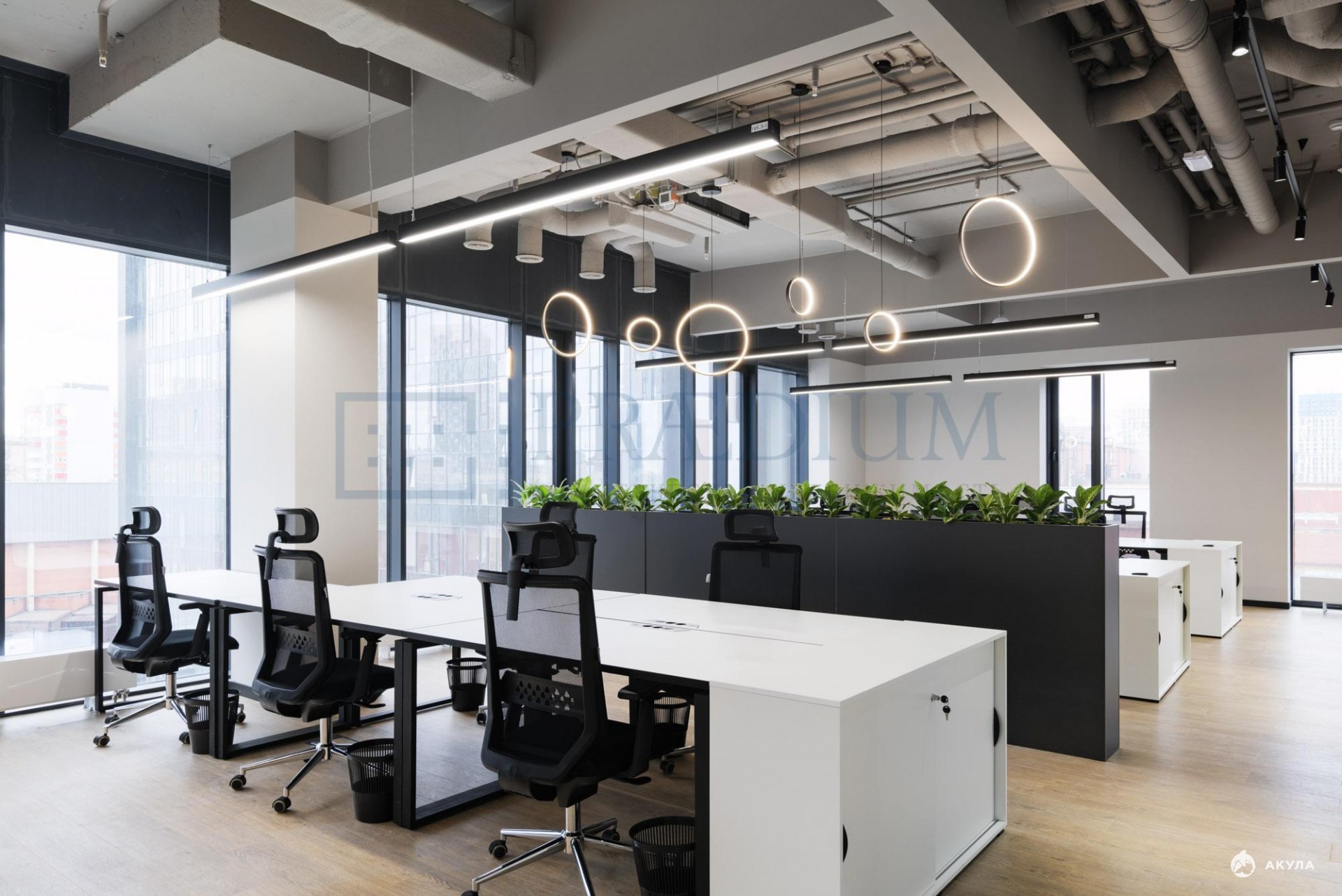 С мебелью. Планировка - смешанная. Приточно-вытяжная вентиляция. Центральное кондиционирование. Интернет, телефония. Охрана. Видеонаблюдение. Система контроля доступа. Наземная парковка.