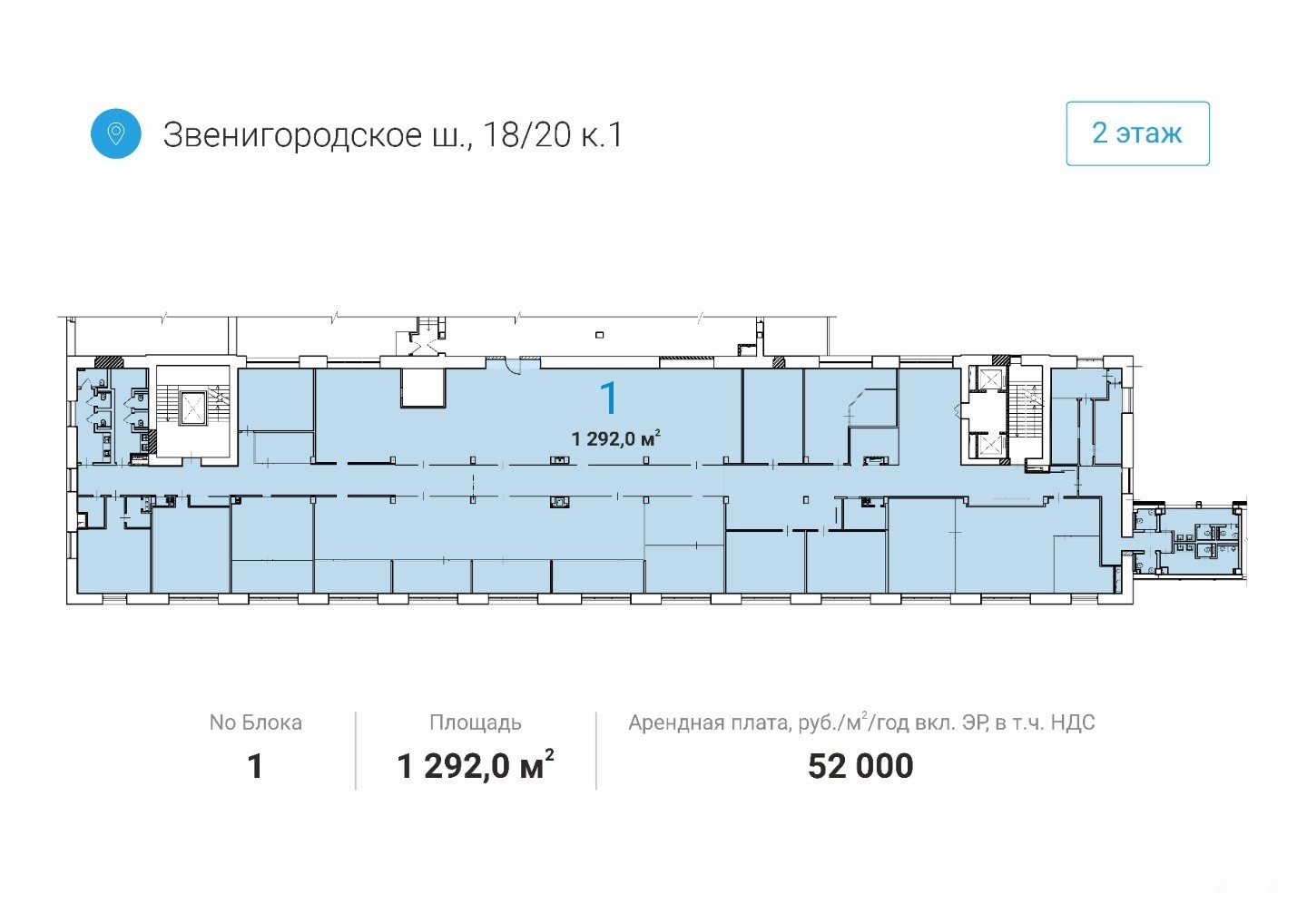 В аренду предлагается просторный офис в БЦ «Звенигородский» площадью 1292 м²