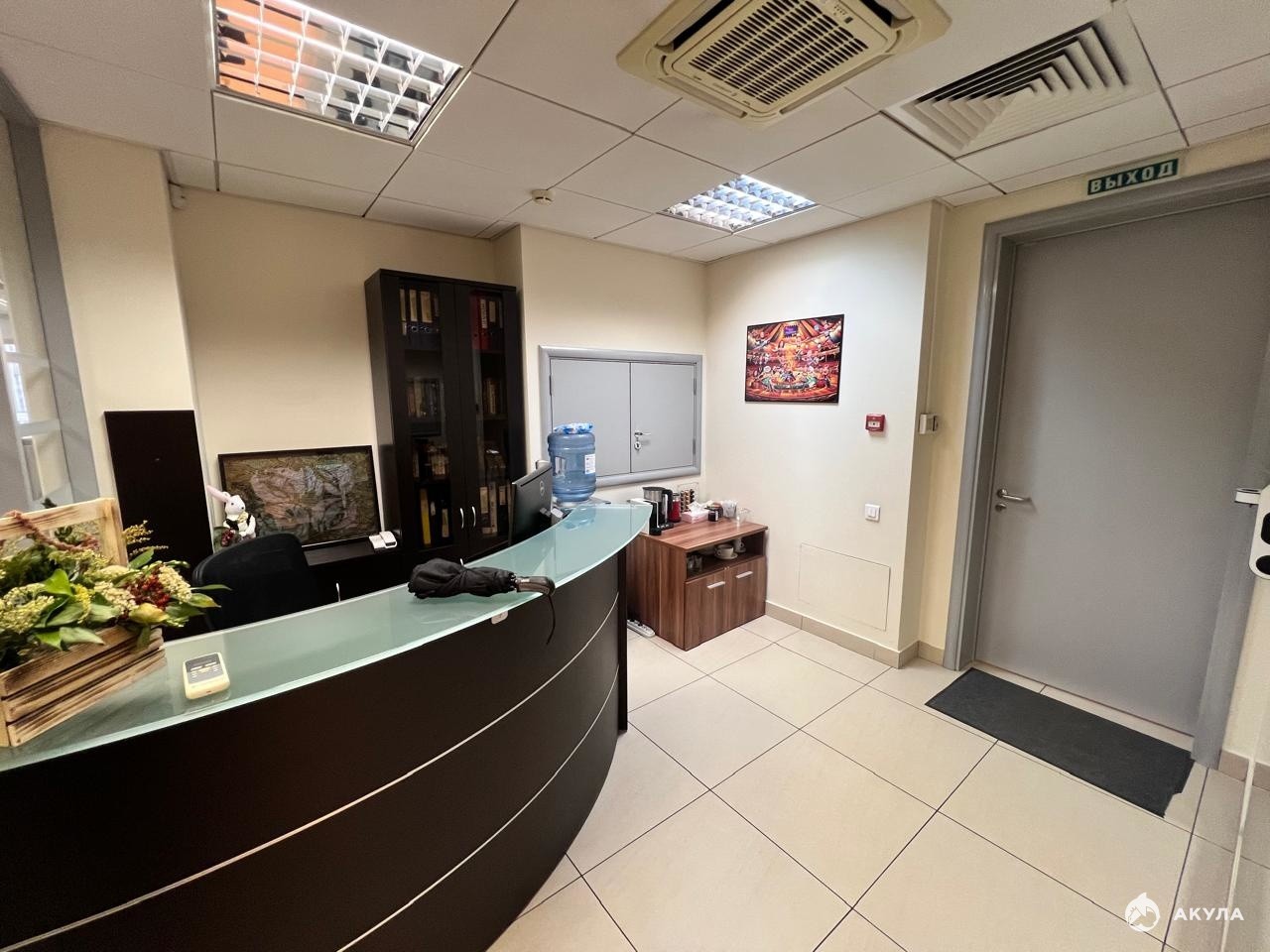 Офис состоит из опен спей, два кабинета, ресепшен, переговорной и два сан узла.
