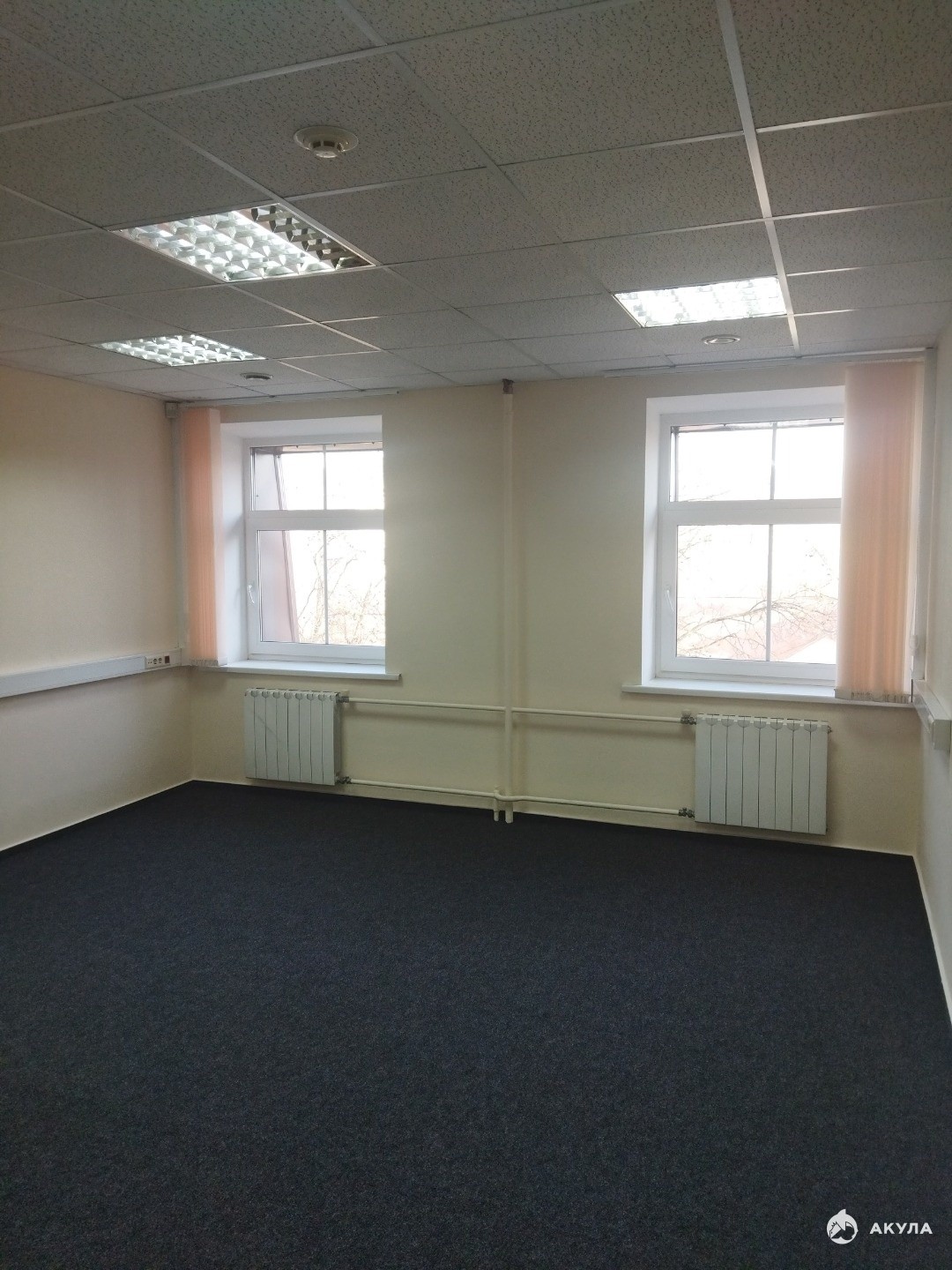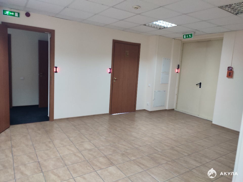 Смешанная планировка: шесть кабинетов, опен спейс и сан узлы.