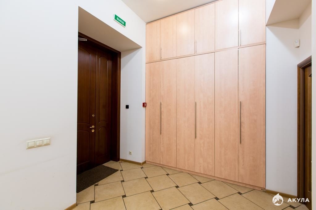Планировка кабинетная: Open space (63кв.м.)+кабинеты (29+17+14 кв.м.), холл (32 кв.м.), 2 санузла, кухня (8 кв.м.).
