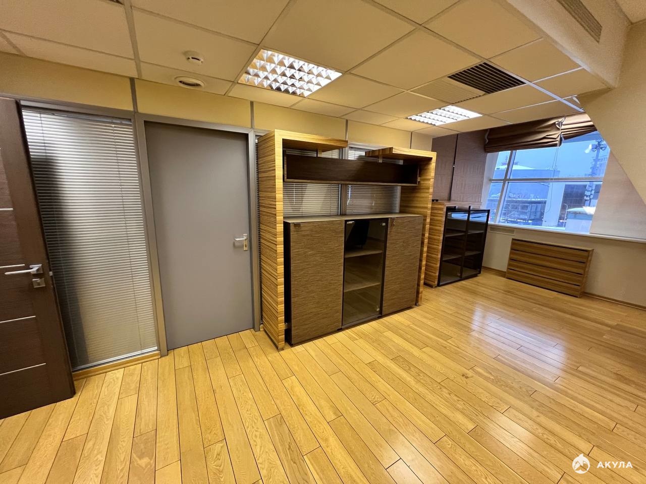 Этаж целиком, планировка кабинетная.