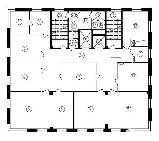 Планировка: офисный блок смешанной планировки.
