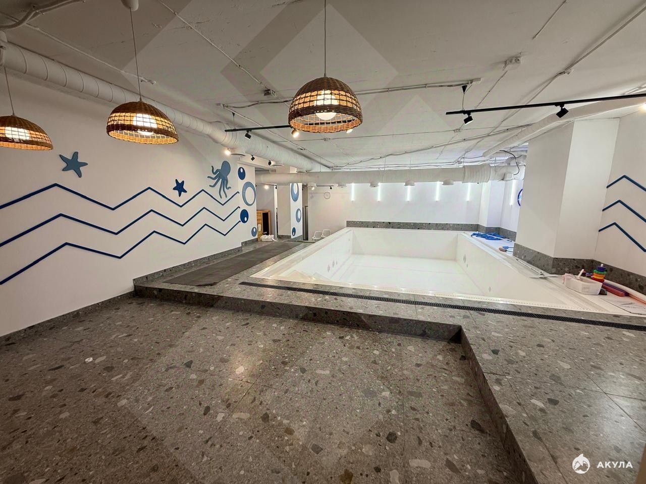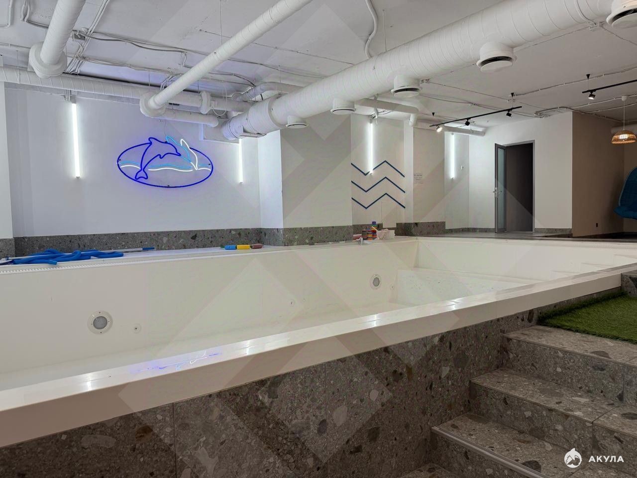 Усиленный пол: Благодаря конструкции (зона бывшего бассейна), пол выдерживает экстремальные нагрузки. Идеально для фитнес-клубов (тяжелые тренажеры), SPA-комплексов (джакузи, бассейны) или детских игровых центров.