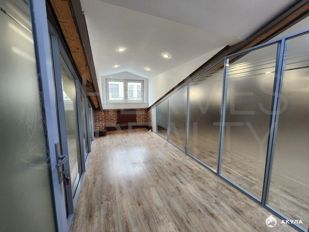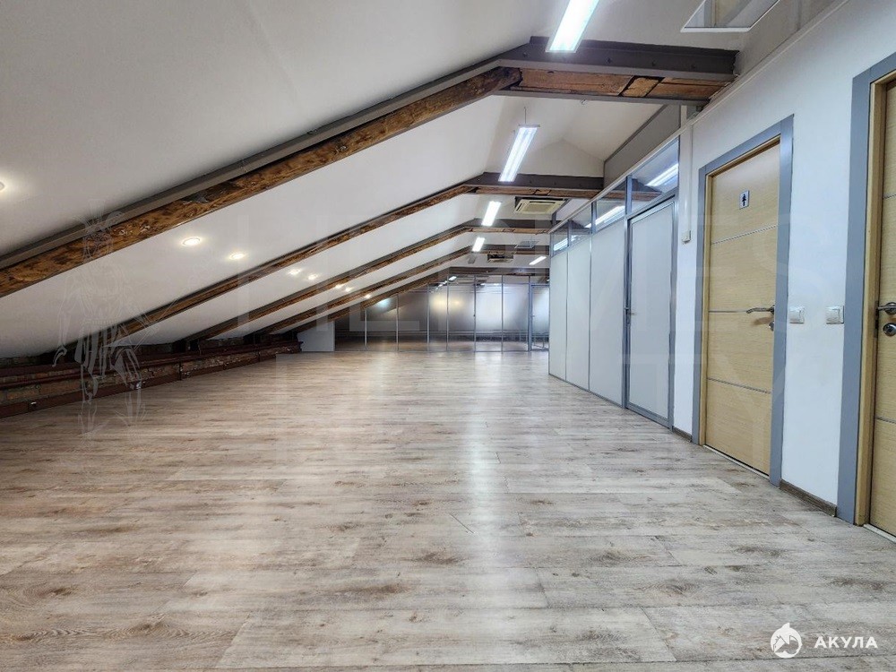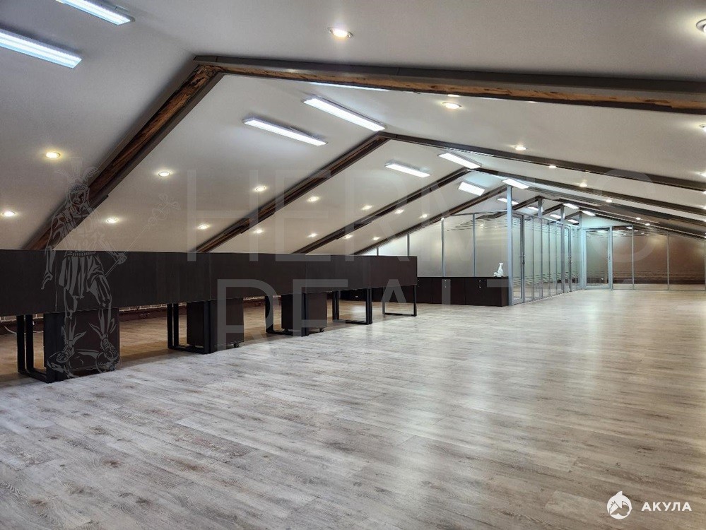 Описание: офисное помещение общей площадью 385, 6 м2 на 4-м (мансардном) этаже. Помещение имеет офисный ремонт в стиле лофт.