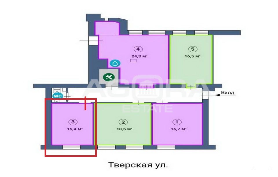 Офисное помещение находится в историческом центре Москвы, рядом с метро Тверская, в 3-х минутах пешком. Офис площадью 15, 4 м2 расположен на 1-м административном этаже 6-ти этажного жилого дома (блок 3 на плане этажа). 1-й этаж – высокий. Отдельный вход в подъезд с офисами - со двора. Офис светлый, с окном. Санузел – на этаже. Планировка открытая. Выполнен свежий качественный ремонт. Высота потолков 3, 2 метра. Эксплуатационные расходы входят в арендную ставку, дополнительных расходов арендатор не несет.