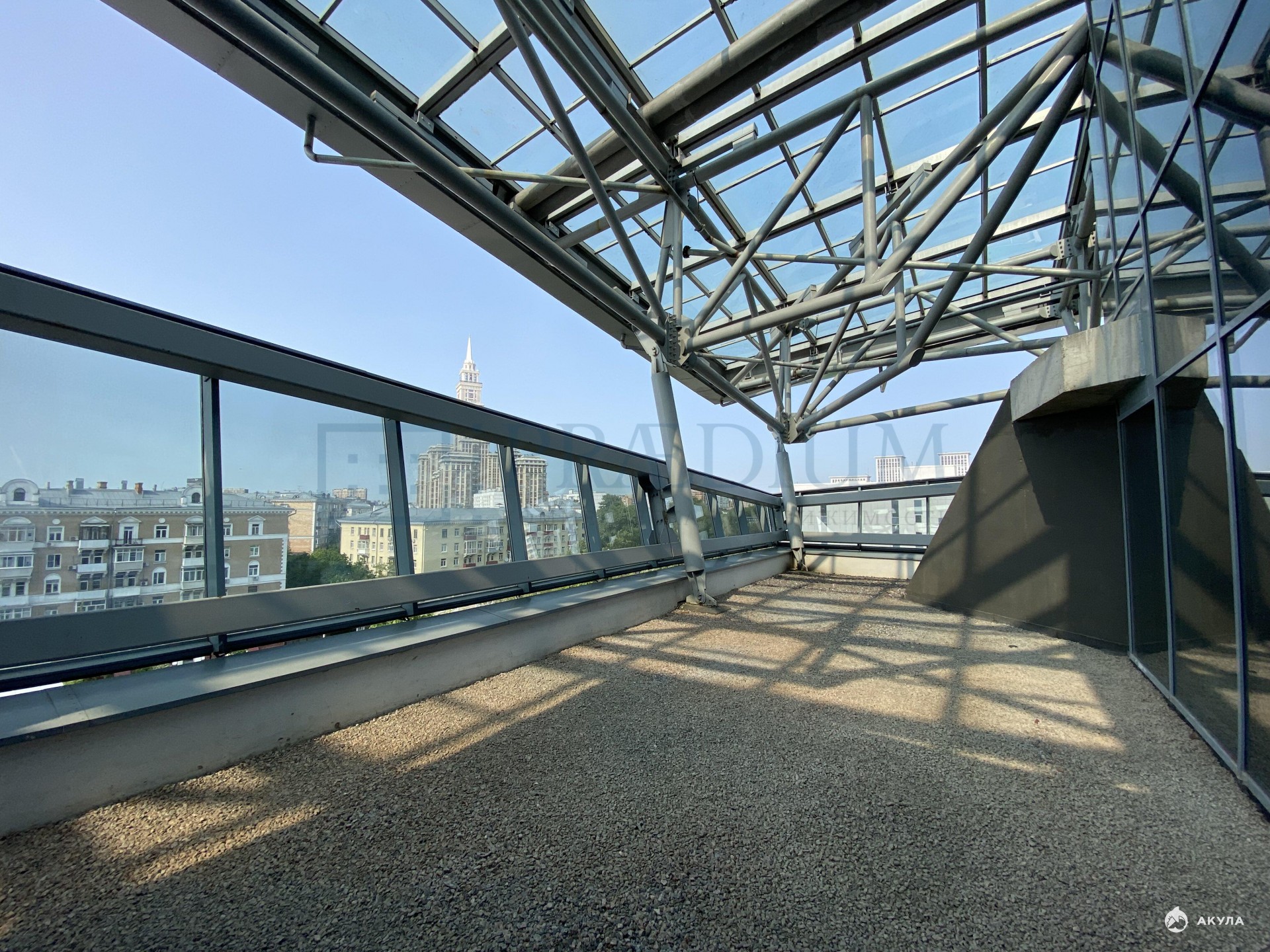 Смешанная планировка помещения: большое открытое пространство open-spase, а также кабинеты поменьше, комната приёма пищи, переговорные, гардероб, открытая терраса. Панорамное остекление здания обеспечивает отличное естественное освещение и прекрасные виды.