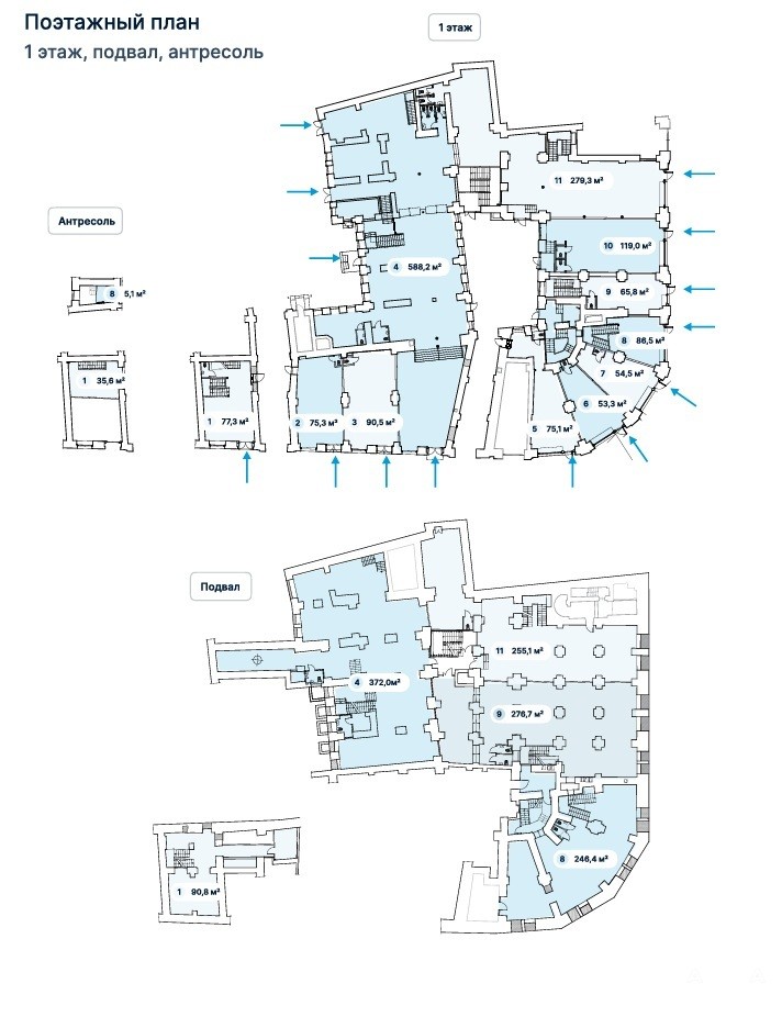 Гибкость планировок: Широкий выбор площадей — от уютных 53.3 м² до просторных 960.2 м². Можно найти решение для стартапа, шоу-рума, салона услуг, офиса или магазина.