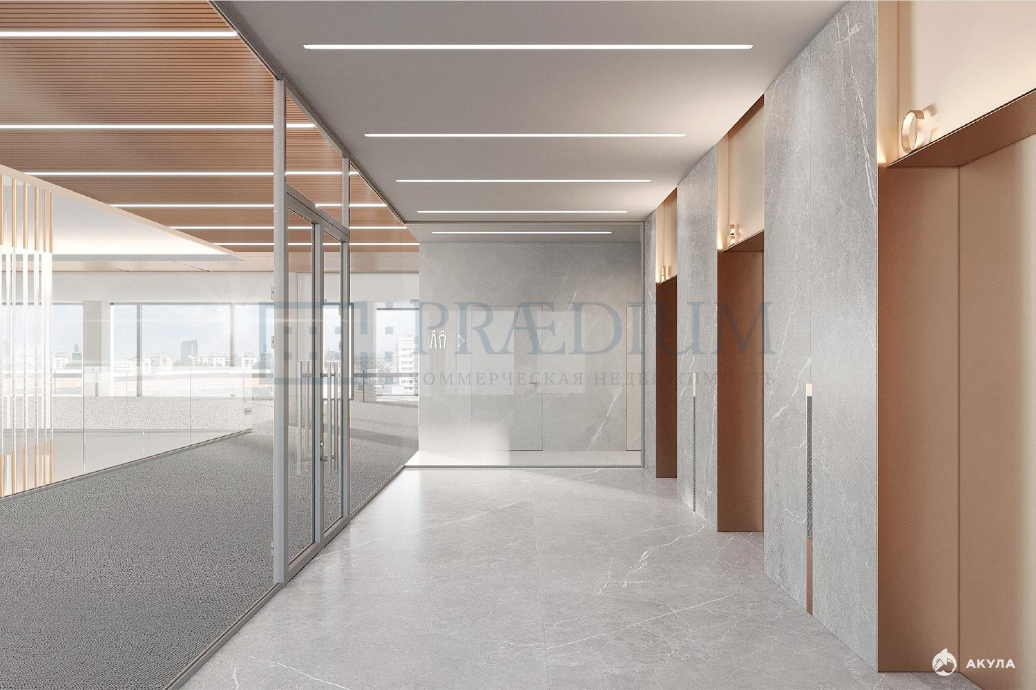 Преимущества офиса включают высокое качество отделки общественных зон, панорамное остекление фасадов, создающее ощущение простора и наполненность естественным светом, стильный атриум со стеклянной крышей, подчеркивающий премиальность проекта.