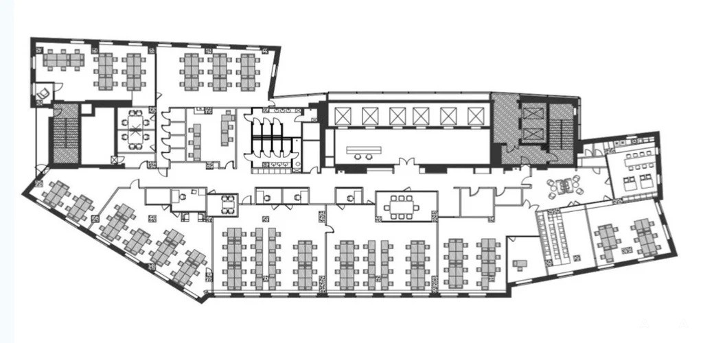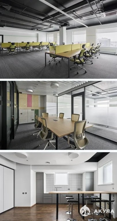 Современная отделка, большие окна, Кухня, кофепоинт, конференц-зал, переговорные, скайп-капсулы, санузлы с душевыми, мебель Возможна перепланировка под запрос арендатора.
