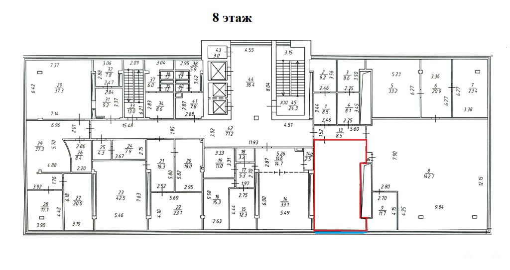 Аренда офисного блока 8 этаж - 50.8 кв.м. (одна комната)