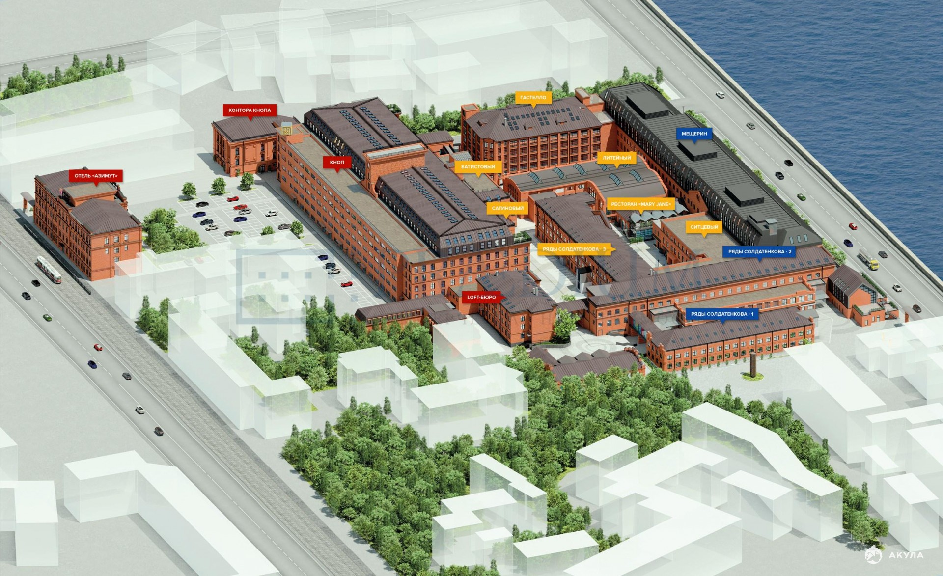 Большая инфраструктура: столовая, кафе разного формата, банкоматы, продукты Фасоль, цветы.