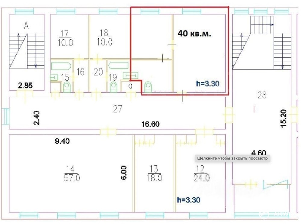 40 м² на 3 этаже из 3. Офисная отделка готово к работе.