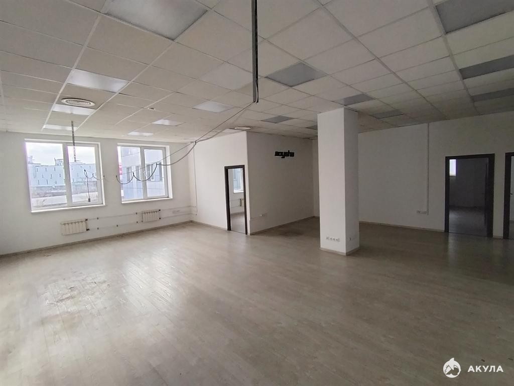 Планировка включает семь комнат, в том числе четыре офиса с естественным освещением (перегородки из гипсокартона). Санитарный узел общего пользования расположен на этаже. Высота потолков составляет около трех метров. Помещения готовы к немедленному заселению.