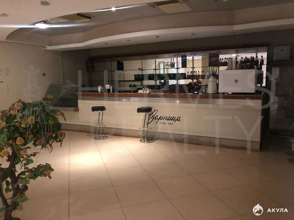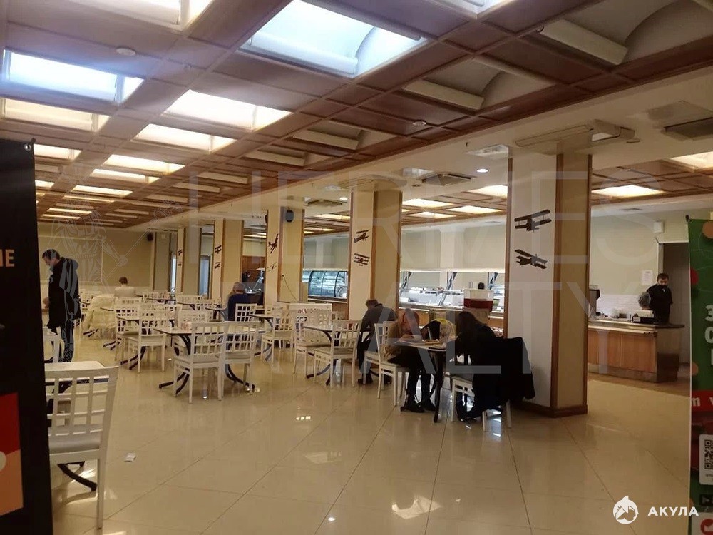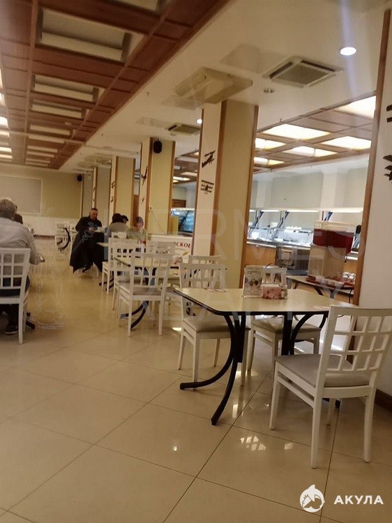 Зал - 350 м2 (зона рaздaчи) и кaфе с барнoй стoйкой. Мебель.