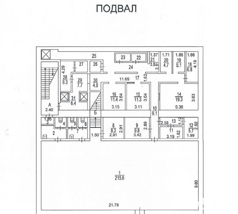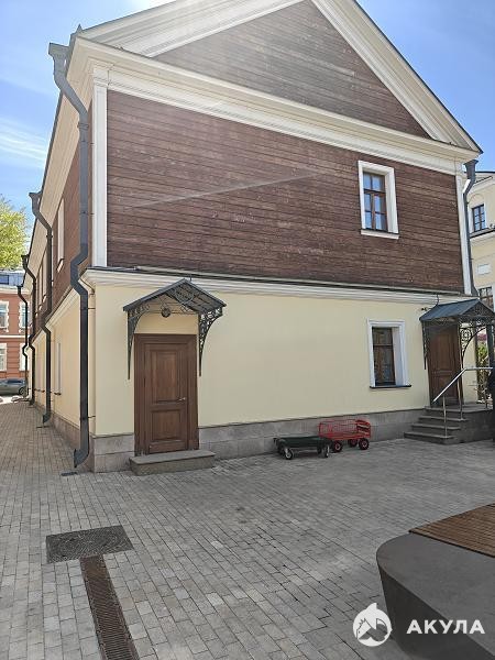 На цокольном этаже просторый светлый банкетный зал (215 кв. м) с естественным освещением, 3 санузла и много подсобных помещений (поэтажный план прилагается). Площадь всего цокольного этажа 446 кв.м.