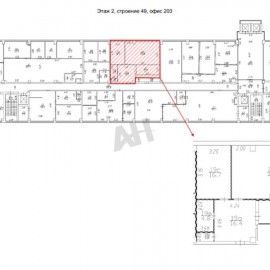 30.9 На настоящий момент свободны комнаты №№ 4 (30.9 м2), 5 (43.8 м2), 6 (29.1 м2) и 8 (27.5 м2). Здание круглосуточно охраняется, имеется платная охраняемая парковка, на первом этаже кафе - столовая. Помещения расположены на 3-ем этаже. Имеются два лифта, пассажирский и...