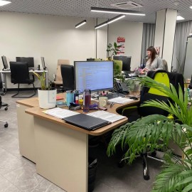 Салон красоты. Общая площадь 245 кв.м, возможно деление. Объект расположен в Офисном центре (S=5034 кв.м), заполненном 73-мя арендаторами (7 турфирм, нотариус, интернет-магазин, столовая и т.д.). Проходимость составляет не менее 500 человек в день. Наличие видеорекламы у лифта...