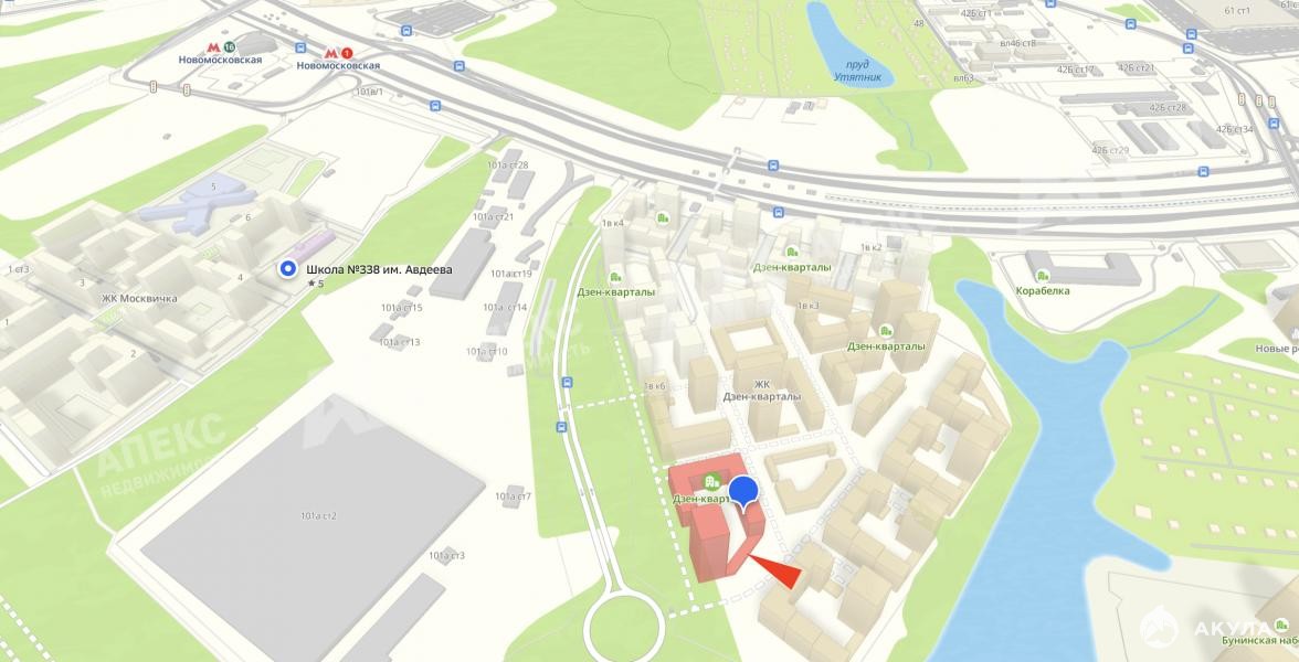Объект расположен в жилом районе «Дзен-кварталы» в Новой Москве. Прогнозируемая численность населения района — 14 500 человек. Станция метро «Новомосковская» находится всего в 10 минутах. Удобные выезды на Калужское шоссе и трассу Солнцево-Бутово-Варшавское шоссе. Район активно заселяется, что гарантирует рост пешеходного и автомобильного трафика.