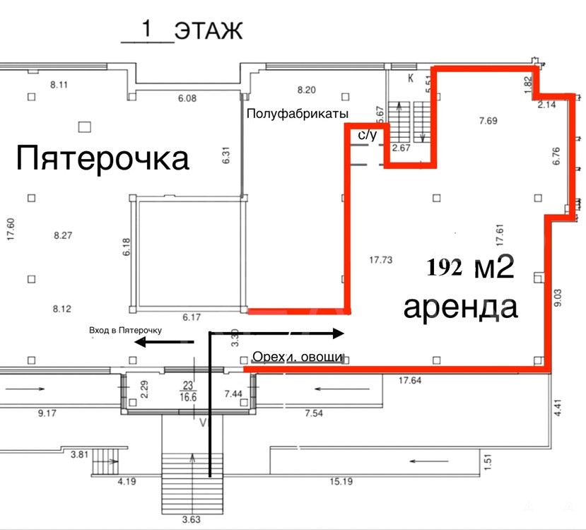 Расположение: Справа от магазина Пятерочка (общая входная группа)