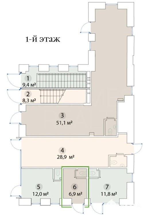 Предлагается в аренду помещение 6, 9 м2, расположенное на 1-ом этаже особняка на Бахрушина.