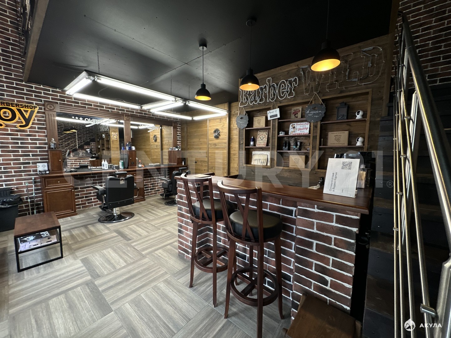 Помещение расположено на первом этаже торгового центра и имеет отдельный вход с улицы, что обеспечивает удобный доступ для клиентов и хорошую видимость. Сейчас оборудовано под барбершоп - можно сразу начать работу или адаптировать пространство под любой формат бизнеса.