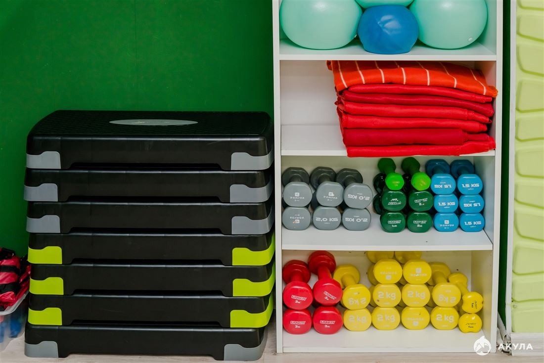 Во всех залах: подсветка, кондиционеры, зеркала, оборудование для фитнеса (коврики, мячи, степперы)