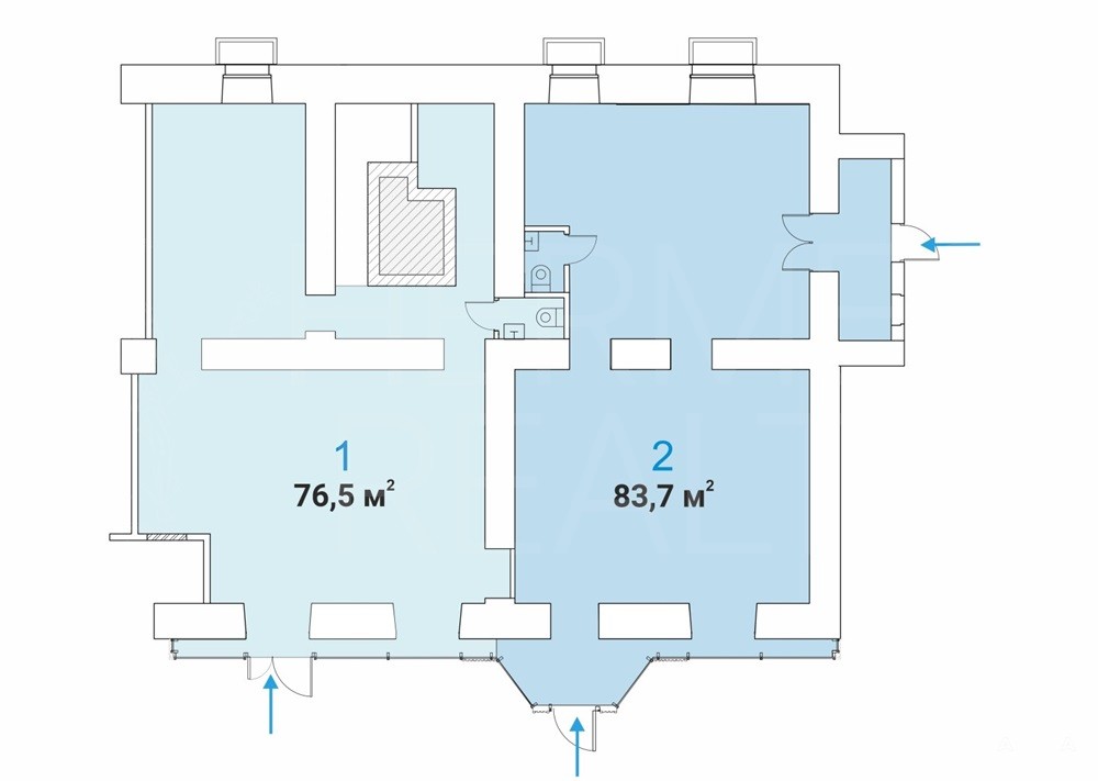 Высота потолков 2, 6 м. Отлично подойдёт под любой вид деятельности: торговое помещение, магазин, ресторан, кафе, аптека, салон красоты, банк, офис продаж, кофейня и др. Отдельная входная группа с фасада в каждый блок, есть входы с торца.