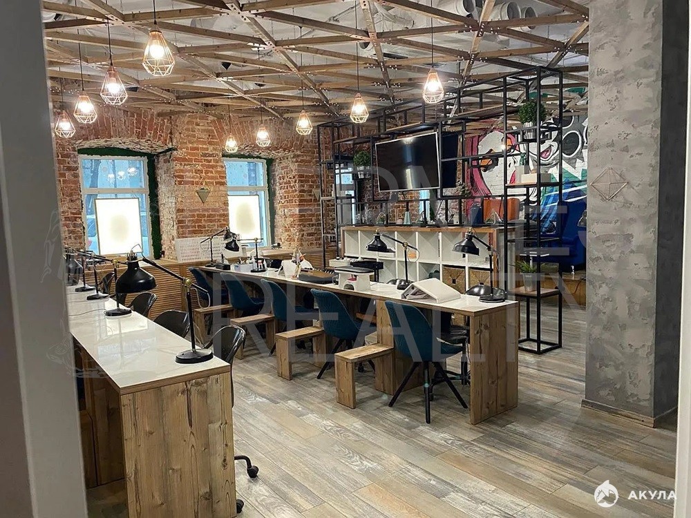 Открытая планировка. Высокие потолки - 3, 36 мнтра. Отделка в стиле лофт. Сан/узлы. Мокрые точки.