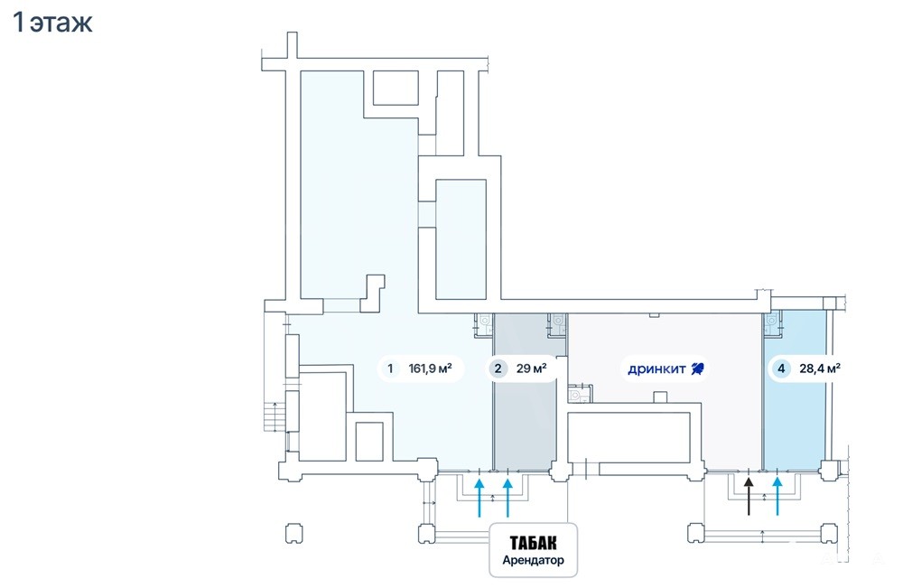 Отдельные входные группы с фасада с 1-ой линии, также имеется вход с торца Планировка свободная (сетка колонн) Высокий рекламный потенциал и места для размещения вывесок Отличная пешеходная и транспортная доступность Помещения подготовлены под чистовую отделку Объект №3100-985217.