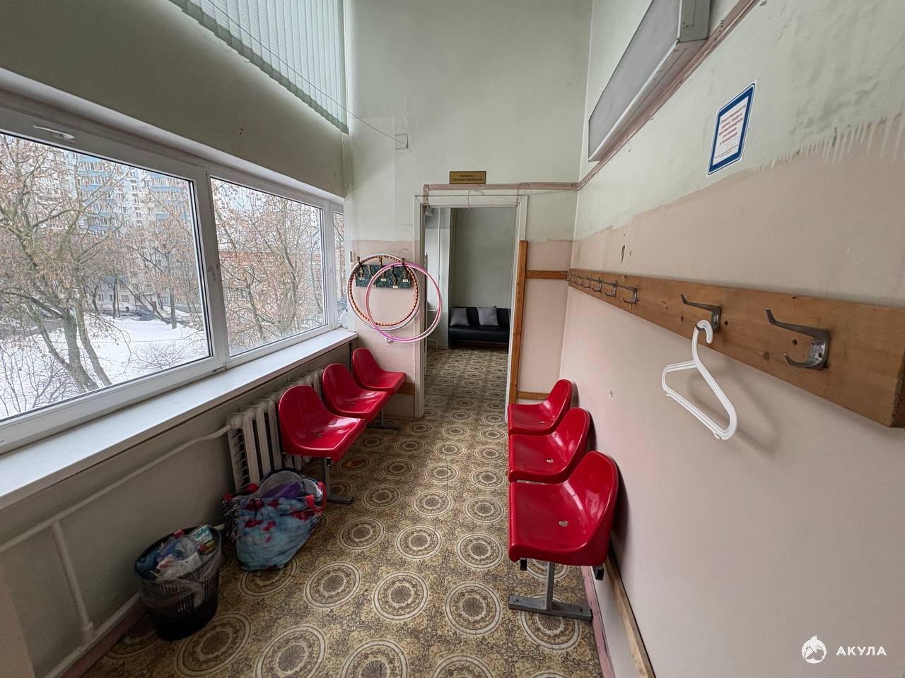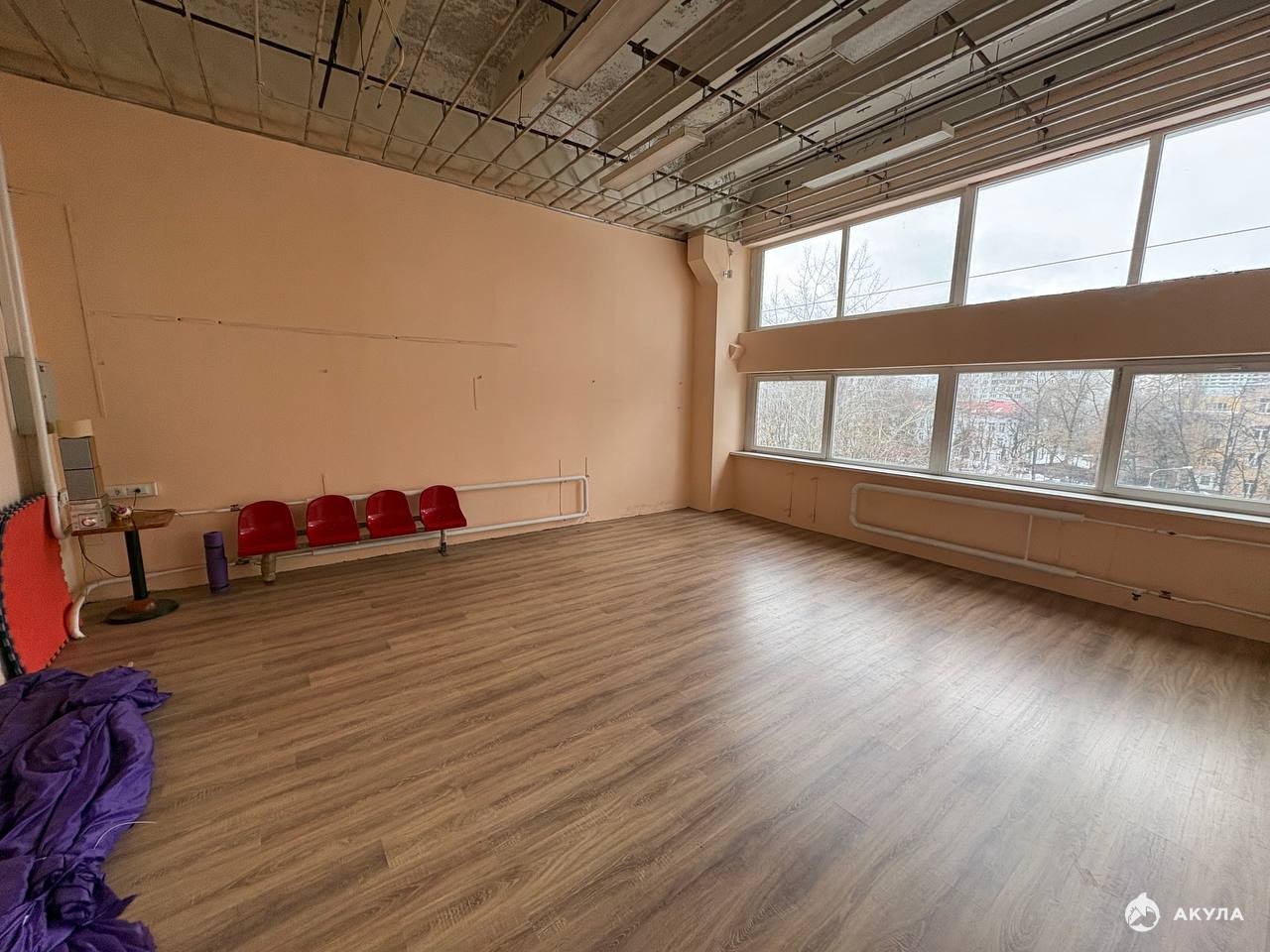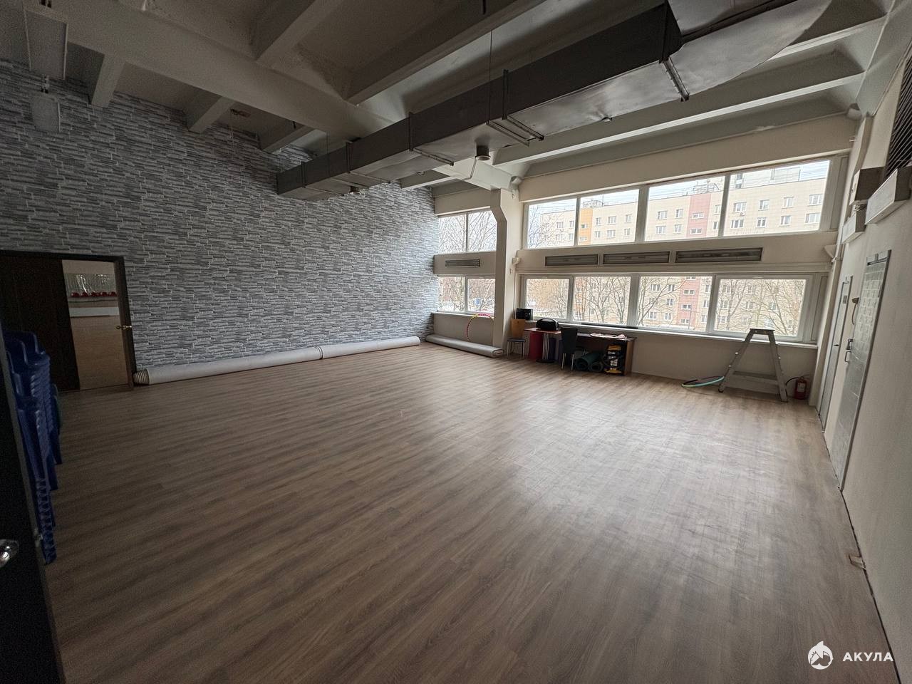 В помещении типовой ремонт, большие окна.