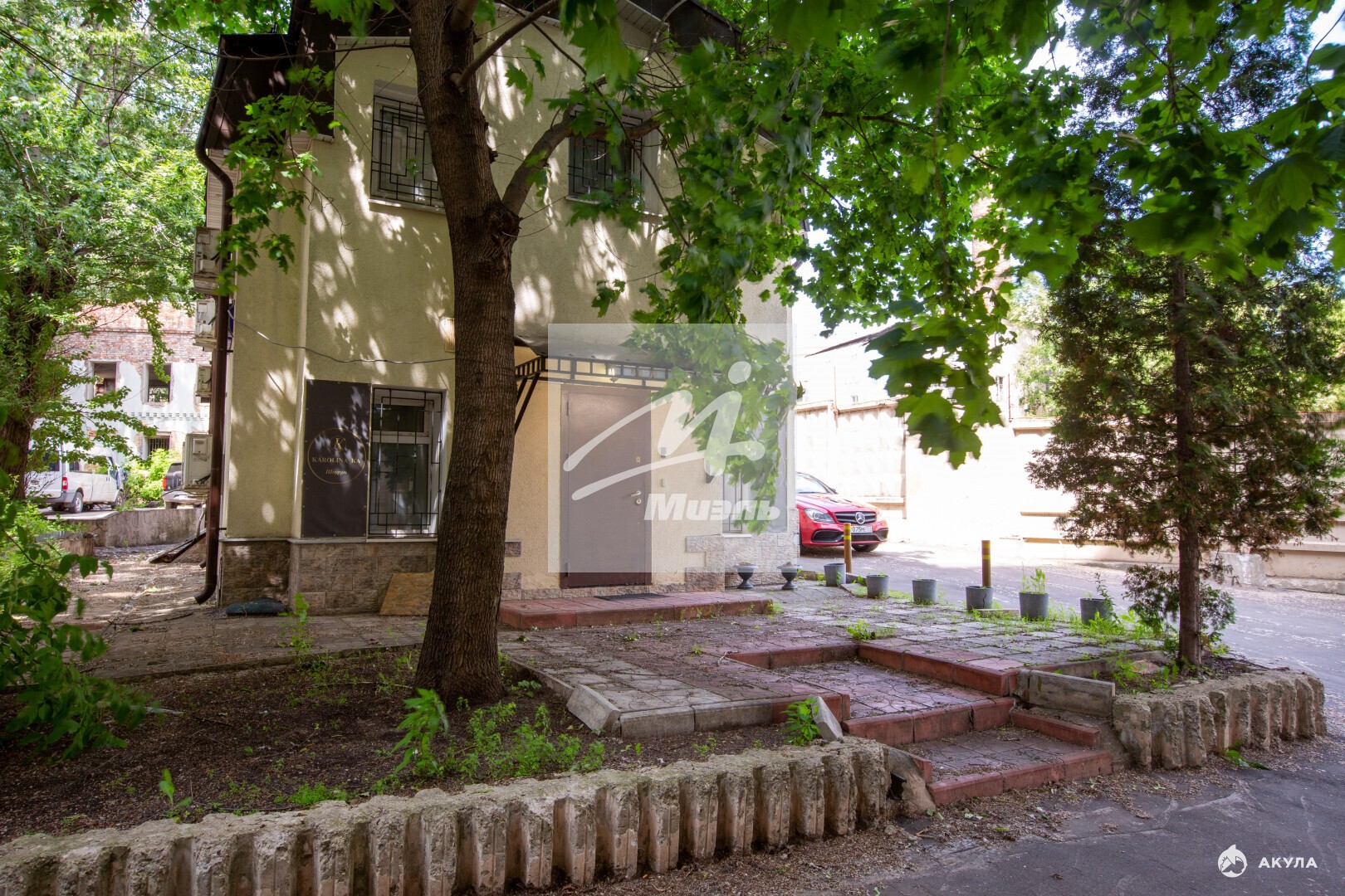 Два входа в здание на 1-й этаж, отдельный вход на второй этаж.