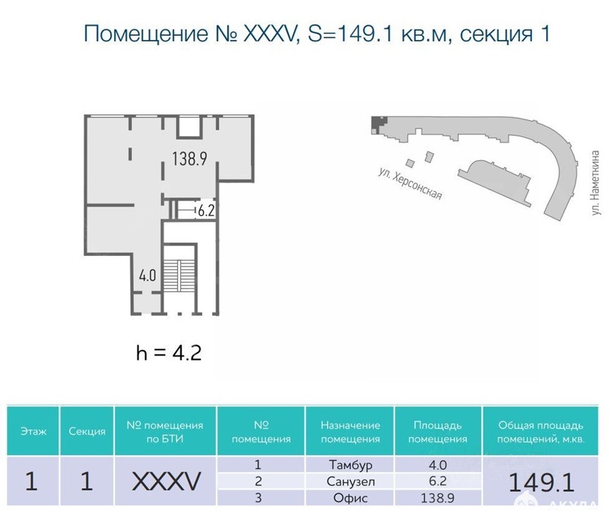 Аренда ПСН 149.1 м2 м. Зюзино в ЮАО ЖК Розмарин Описание: Помещение свободного назначения, практически под любой вид деятельности в современном ЖК Розмарин. Расположение: 13 минут пешком м. Зюзино. Коммуникации: все центральные, электрическая мощность 30 кВт. Высота потолков - 4, 2 метра. Дополнительно: Разделено на: офис общей площадью 138, 9 кв.м., тамбур - 4, 0 кв.м., и санузел - 6, 2 кв.м. Отделка черновая. Звоните, ответим на Ваши вопросы и организуем показ в удобное для Вас время! Объект №3100-965424.
