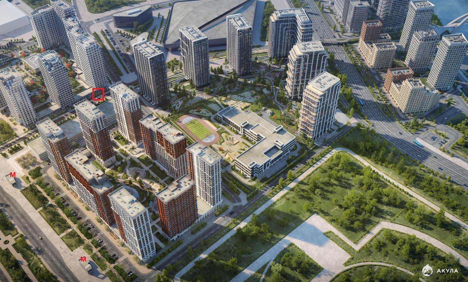 Дом входит в состав ЖК «ОСТРОВ» в окружении спортивного кластера: спортивный комплекс ЦСКА, легкоатлетический манеж, Ледовый дворец Т.Навки.