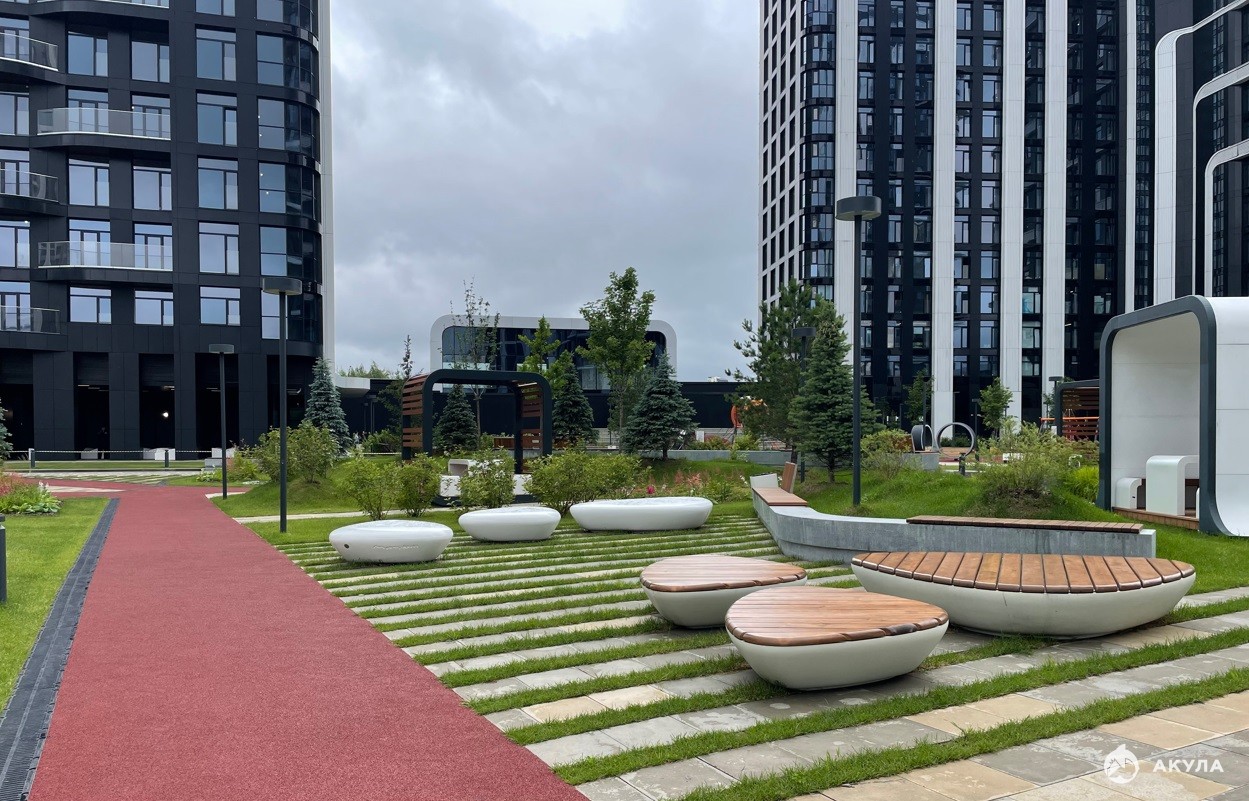 Расположено в самом центре жилого комплекса, на пересечении трех кварталов ЖК. Стабильный пешеходный и автомобильный трафик.