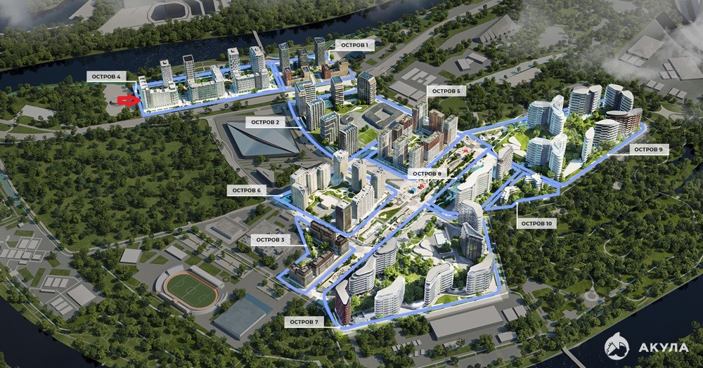 Дом входит в состав ЖК «ОСТРОВ» в окружении спортивного кластера: спортивный комплекс ЦСКА, легкоатлетический манеж, Ледовый дворец Т.Навки.