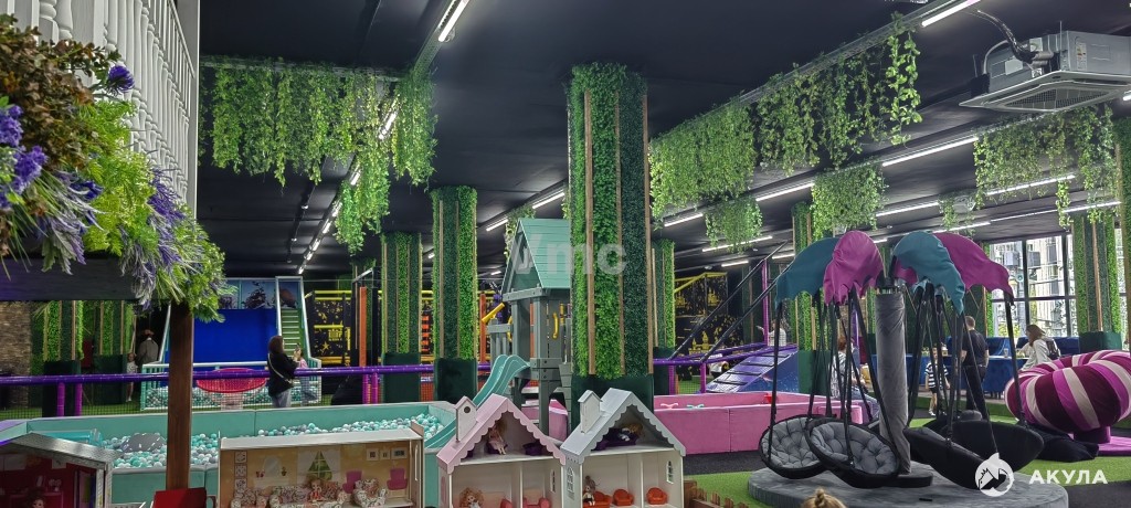 Помещение имеет свободную планировку, высота потолков 3, 8 м., мощность электричества 150 кВт с возможностью увеличения, несколько мокрых точек и санузлов, панорамные окна, 2 лифта и 2 лестницы, сделан ремонт под детский развлекательный центр с кафе со своей кухней, комнатами для проведения дней рождений, высокая посещаемость ТРЦ. В стоимость не включена эксплкатация, которая составляет 110 000 (Сто десять тысяч) эжемесячно, дополнительно к арендной плате.