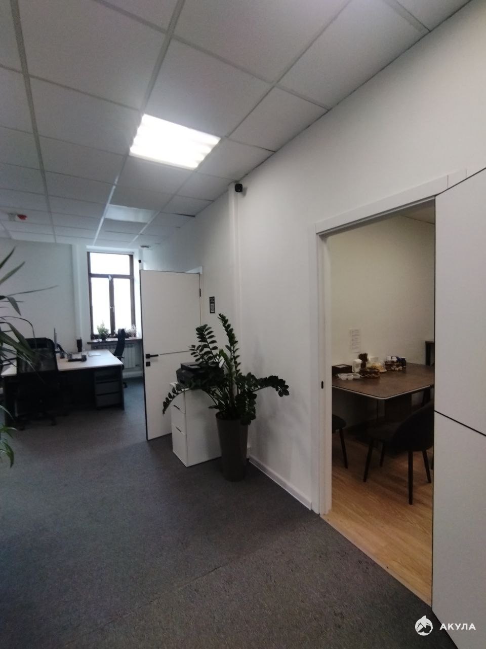 Планировка помещения на сегодняшний день: зона ресепшн, две переговорные, кухня (полностью оборудованная и со своим с/у), с/у, серверная, 6 кабинетов, возможно увеличение до 7.