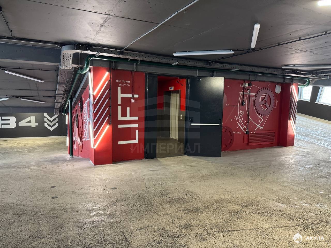 На любой этаж здания возможно заехать на автомобиле по спиральной рампе. Высота потолка — 2, 5 м, нагрузка на пол — 350 кг/м2. Также в здании есть два грузопассажирских лифта до 3 тонн.